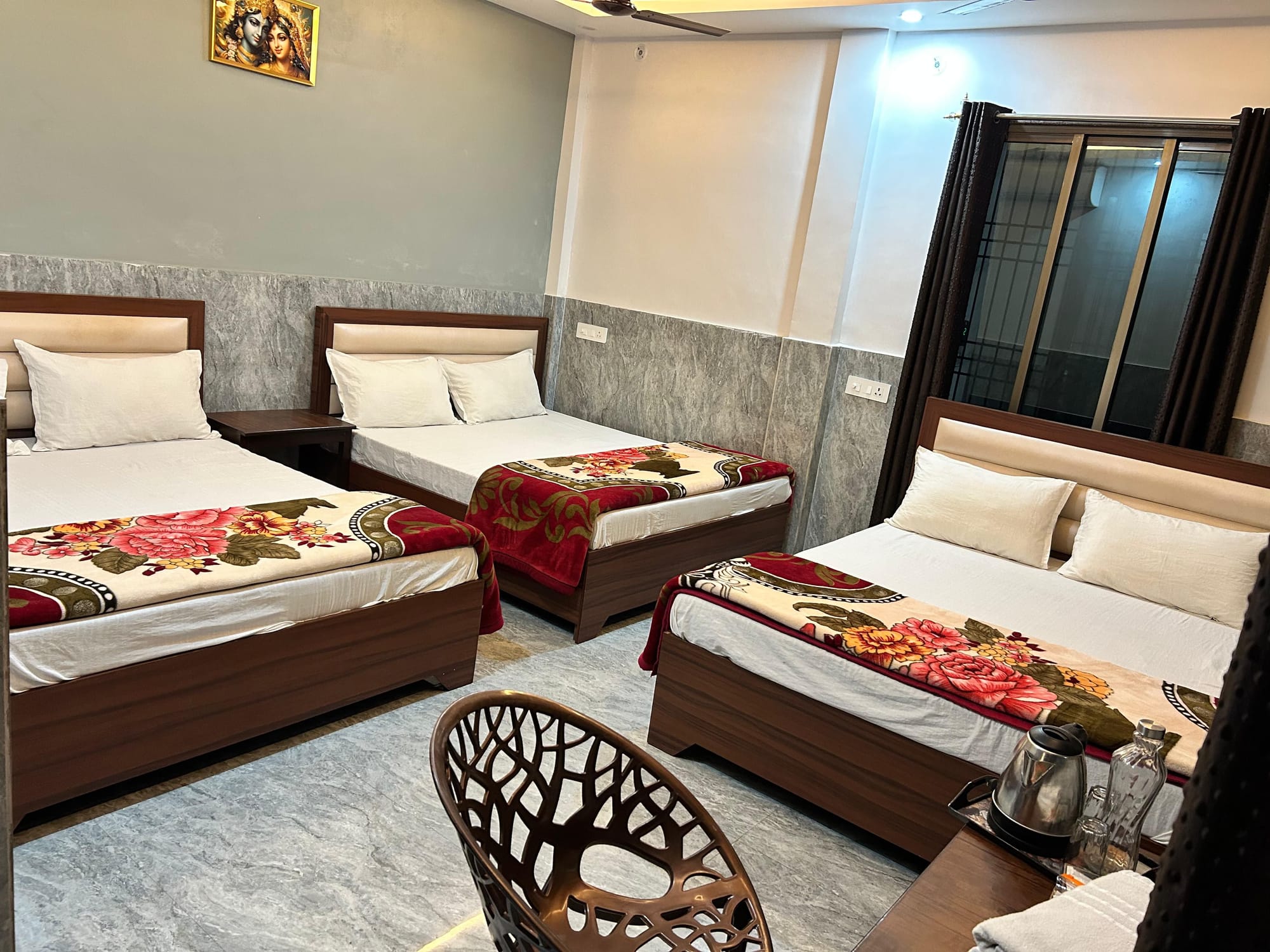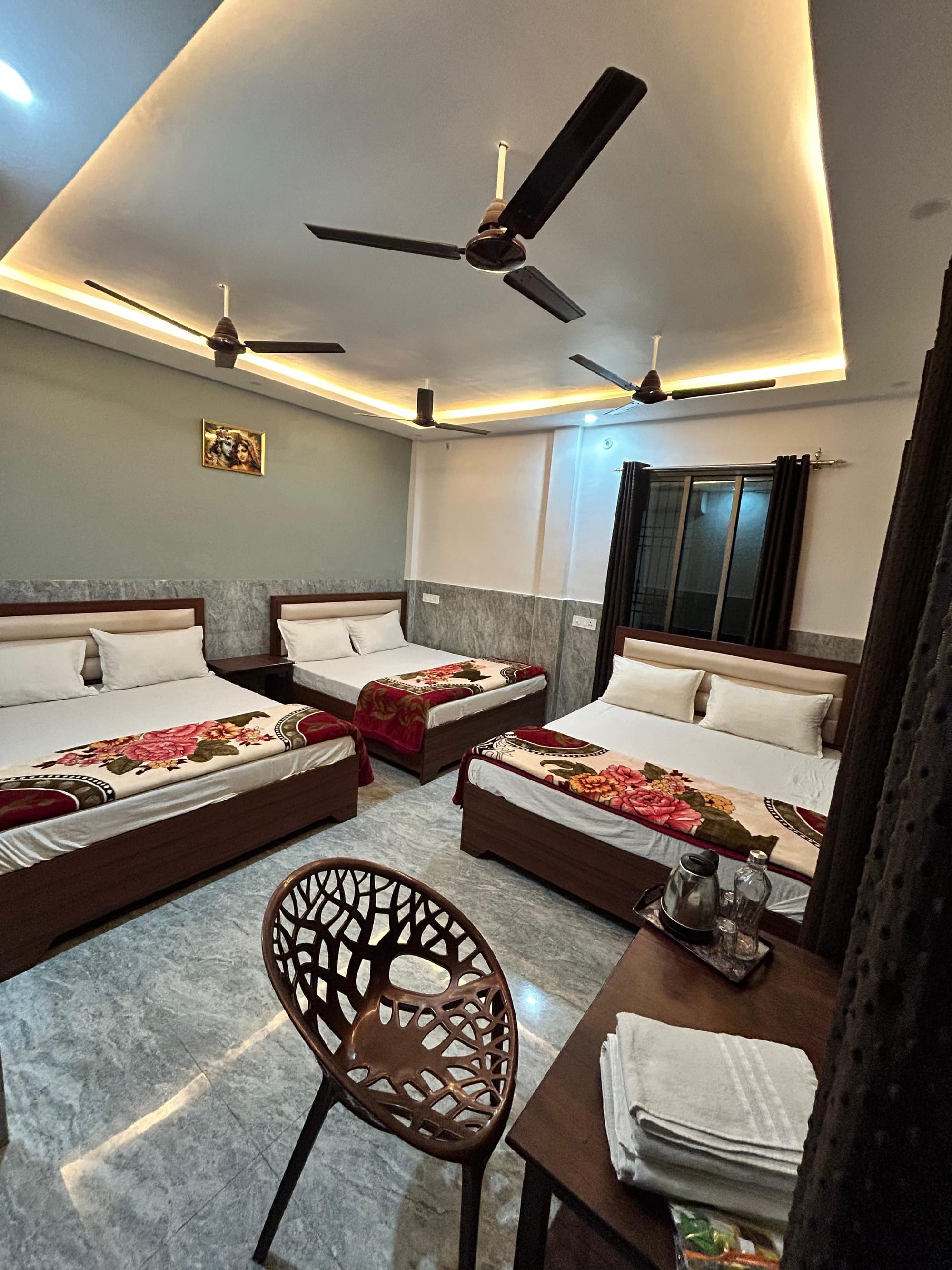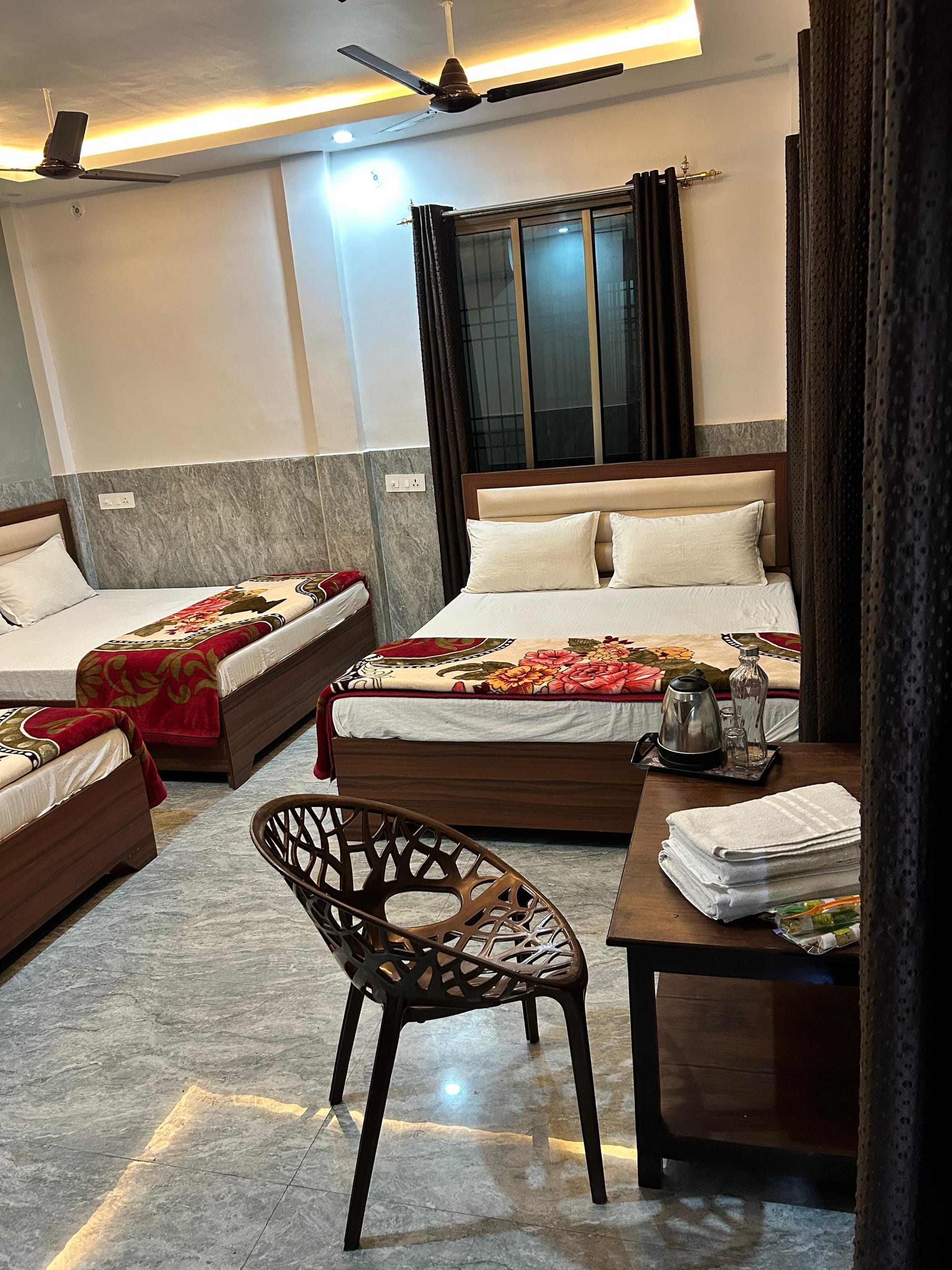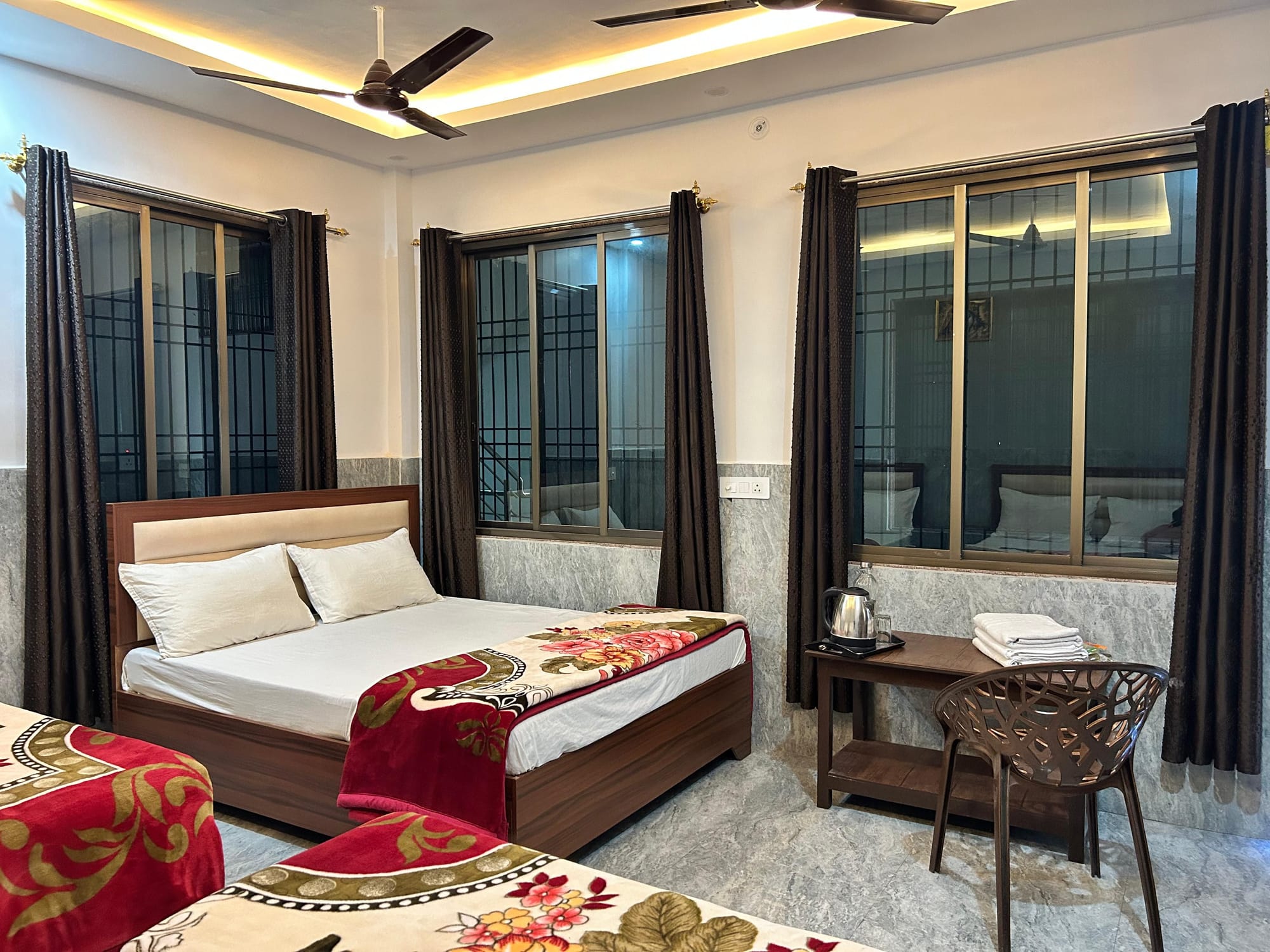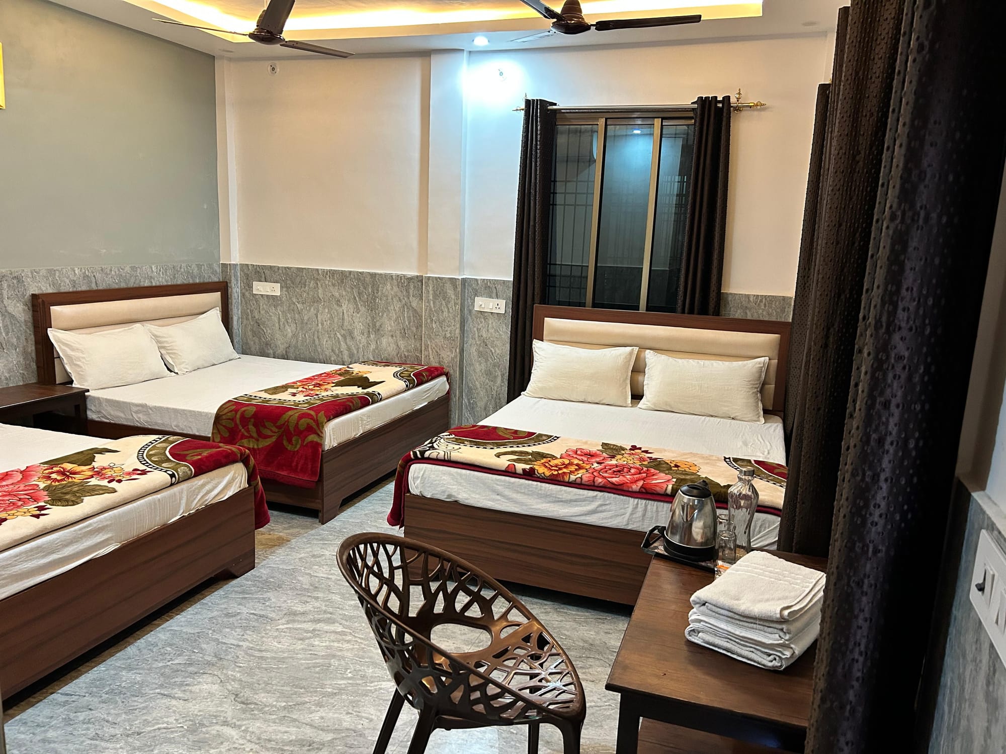 Learn MoreSix Bedroom Bedroom – Comfort & Convenience Enjoy a stylish, comfortable room with an attached bathroom, 3 queen-size bed, AC, free Wi-Fi, and more!