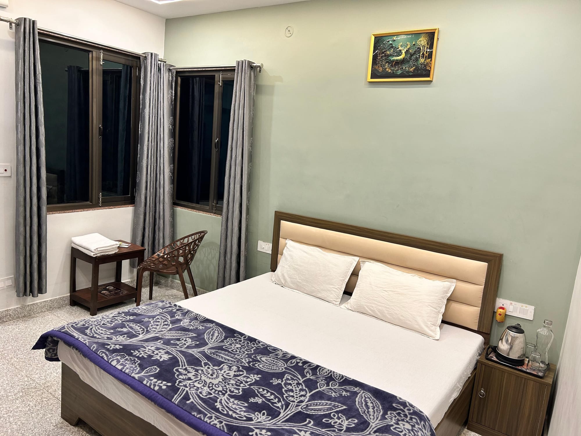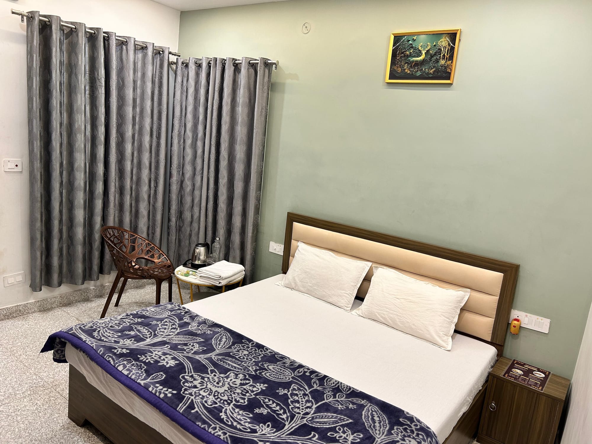 Double Bedroom – Comfort & Convenience Enjoy a stylish, comfortable room with an attached bathroom, queen-size bed, AC, free Wi-Fi, and more!